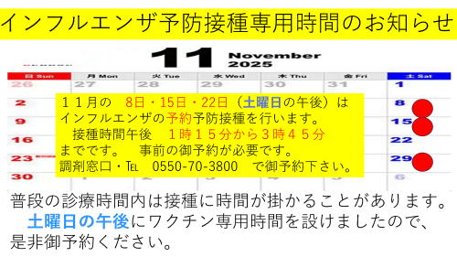 点鼻インフルエンザワクチン(フルナーゼ)は必ず予約してください